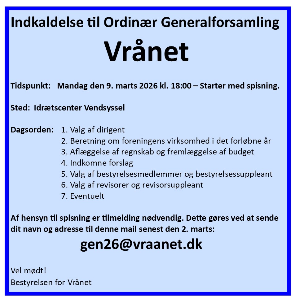 VIGTIGT! Husk at tilmelde dig via mail: gen26@vraanet.dk